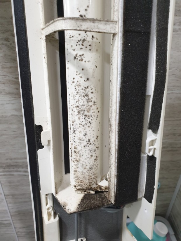 6) 에어컨 열교환기에서 곰팡이가 보일 때,